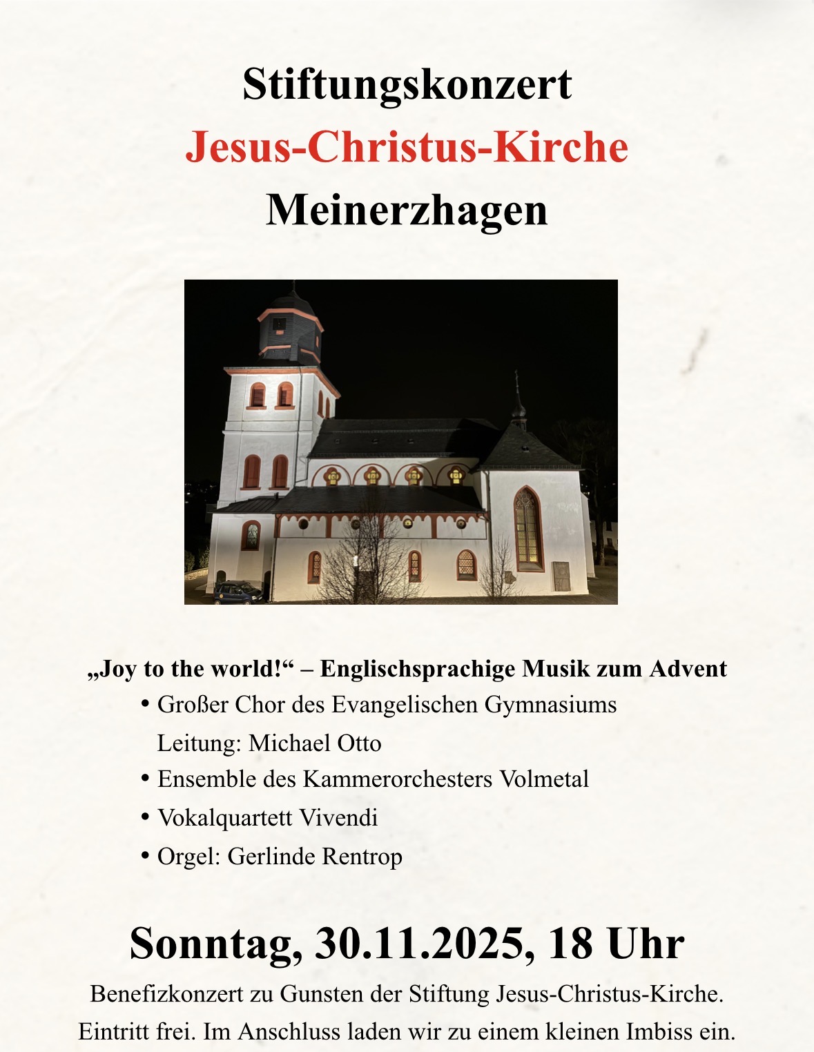 Herzliche Einladung zum diesjährigen Adventskonzert der Stiftung Jesus-Christus-Kirche am 1. Dezember 2024